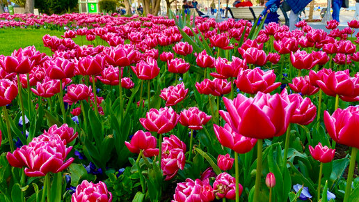 В Крыму тепло, народу полно, а некоторые уже загорают и купаются в море. Цветы на Набережной в Ялте