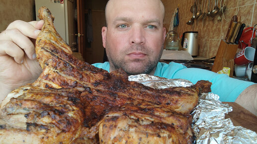 Кушаю курицу приготовленую на мангале.