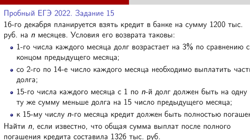 Задание 15. #9 Финансовая математика. Пробный ЕГЭ 2022