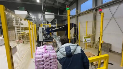 Автоматизация линии по укладке мешков с готовой продукцией на паллеты