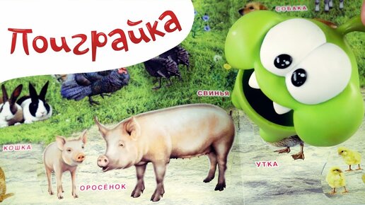 Ам Ням на оранжевом Тракторе едет на ферму к животным - игра с наклейками - Поиграйка с Катей