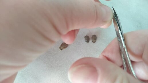 Скарифицировала семена арбуза и дыни. Показываю процесс обрезки