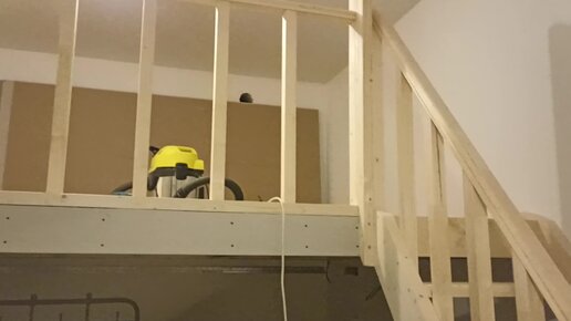 Второй ярус под отделку гипсокартоном. Лестница классика эконом с широкими ступенями