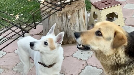 Собаки ждут свой кусочек шашлычка. Они старались, 2 часа жарили, а двуногий всё себе забрал