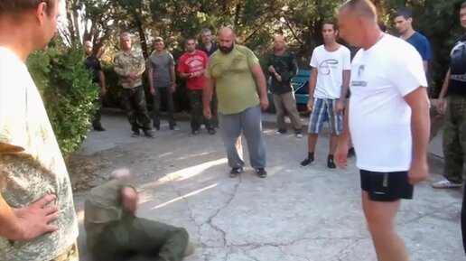 Защита от редкого удара сверху острым ножом , муляжом . Удару не мешаем , делаем вытяжку , управляем . Крымский семинар .