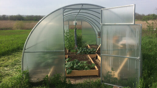Установил теплицу из поликарбоната на грунтозацепы, показываю как обустроил ее