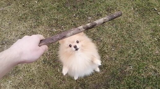 Шпиц бегает за палкой))