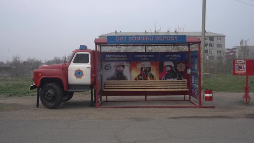 Пожарный автомобиль приспособили под остановку в Экибастузе