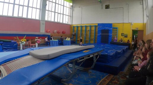 Победа дочки в первенстве Вышневолоцкого округа по прыжкам на акробатической дорожке