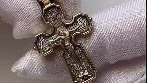 Золотой нательный крест «Распятие. Казанская икона Божией Матери. Николай Чудотворец», золото 585 проба желтое (арт. 201.512)