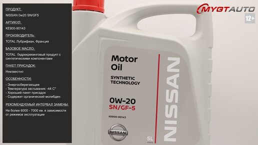Масло моторное Nissan 0W-20 SN/GF5 KE900-90143 #ANTON_MYGT