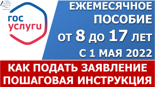 Пошаговая инструкция подачи заявления на новую выплату от 8 до 17 лет на портале "Госуслуги".