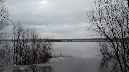 26 апреля. 2022 г. На Северной Двине в Архангельской области первый катер после ледохода тянет баржу. Надежны новой навигации.