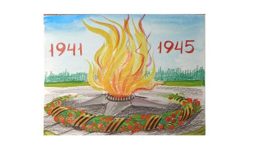 Вечный огонь - рисунок красками и цветными карандашами.