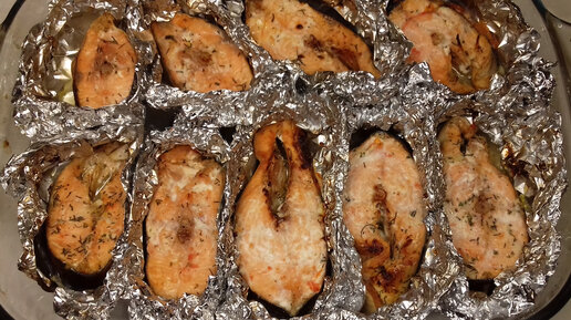 Кета запеченная в духовке в фольге. Очень простой рецепт, рыба получается очень сочная и вкусная