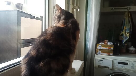 Котосемья. Все коты на кухне собрались, в комнате - уборка.
