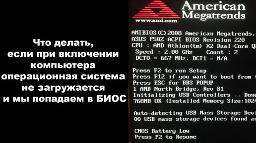 Что делать, если при включении компьютера операционная система не загружается и мы попадаем в БИОС