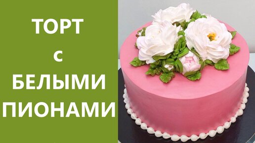 Торт с Белыми Пионами(крем БЗК). /Cake with White Peonies(protein custard).