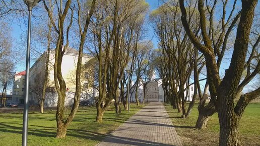 Красивая аллея у Высокой башни Окольного города Пскова