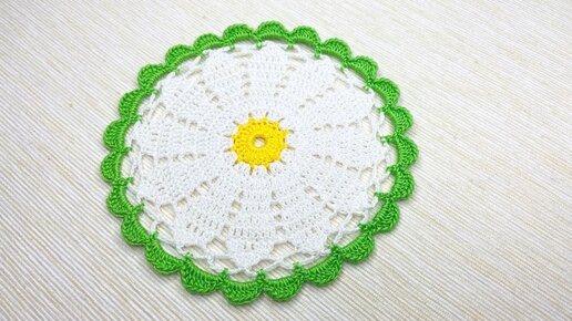 Видео обзор по вязанию крючком салфетки в виде ромашки.