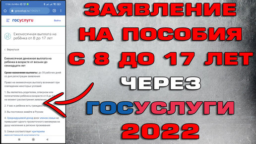 Как подать заявление на пособие с 8 до 17 лет 2022 через Госуслуги