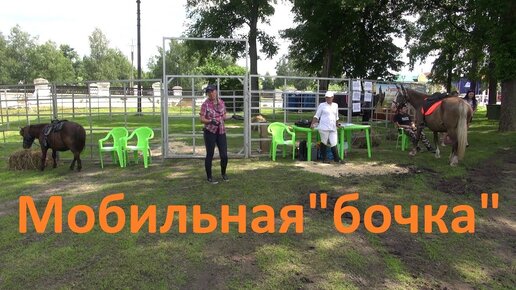 Лошади работают в мобильной "бочке" на массовых мероприятиях.