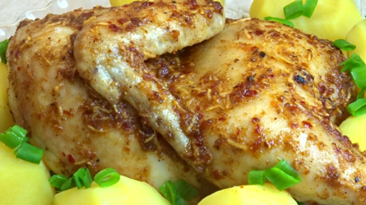 Курочка в духовке по этому рецепту получается невероятно сочной, с хрустящей корочкой (секрет в этапах приготовления)