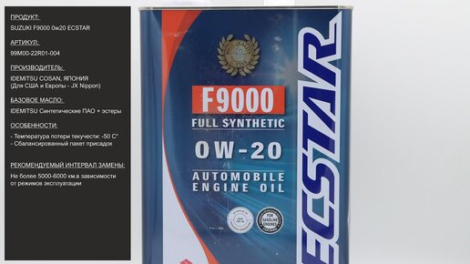 Масло моторное SuzukiI F9000 0W-20 ECSTAR 99M00-22R01-004 #ANTON_MYGT