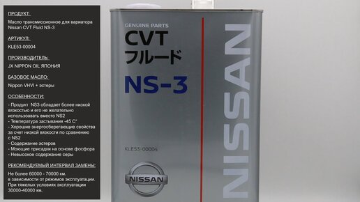 Масло трансмиссионное для вариатора Nissan CVT Fluid NS-3 KLE53-00004 #ANTON_MYGT
