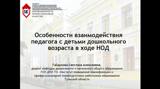 Лекция Гайдуковой С.А., доцента кафедры дошкольного и начального общего образования ГОУ ДПО ТО "ИПК и ППРО ТО"