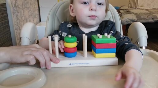 Как играть с ребенком? Собираем пирамидку геометрик.