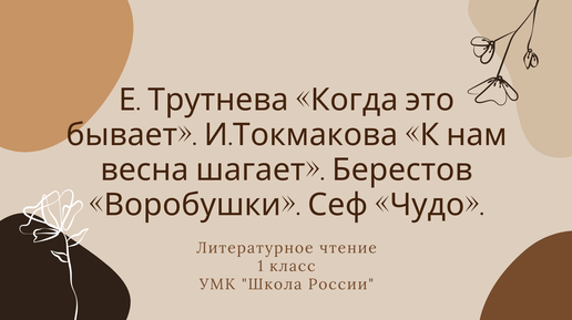 Е. Трутнева «Когда это бывает». И.Токмакова «К нам весна шагает». Берестов «Воробушки». Сеф «Чудо». Урок чтения, 1 класс