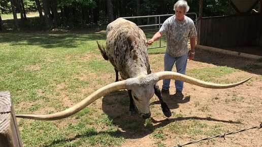 Лонгхорн: Одичал, отрастил рога в 6 метров, а потом его одомашнили заново. Мощный бык, на котором ездят верхом | Видео 🎥