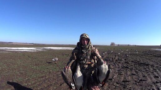 Охота на гуся весной 2022,отличная утрянка,красивые налёты,работа манками...
