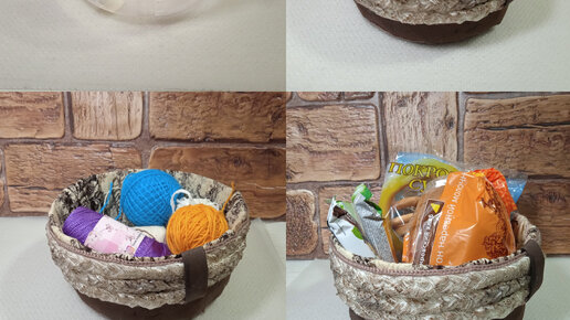 Из крышки от торта получилась очень удобная и легкая корзинка для пользования в быту
