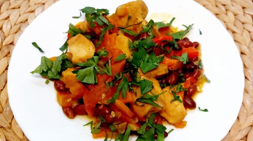 Томлёное в казане. Нежное куриное филе с фасолью и овощами.