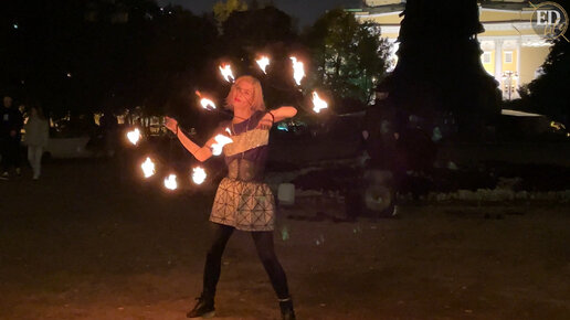 Девушка и огонь – эффектное вечернее фаер-шоу в Екатерининском саду Санкт-Петербурга
