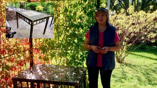 Стол сварной с ковкой, патиной и мозаикой из остатков после строительства.