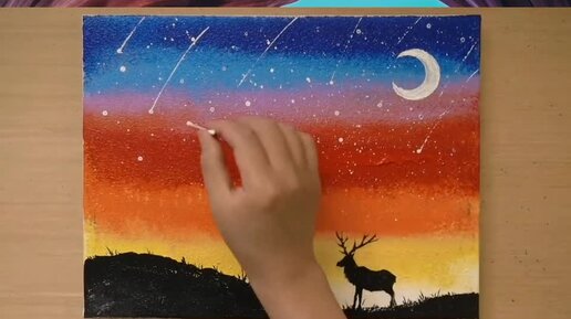 Живопись акрилом🎨 Рисуем оленя с помощью полиэтиленовой пленки🦌