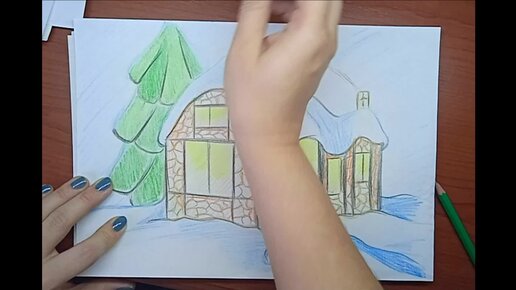 Как нарисовать снег // Заснеженный домик \\ рисуем зиму и ель