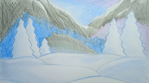 Зимний лес \\ Лес карандашами // Как нарисовать зиму