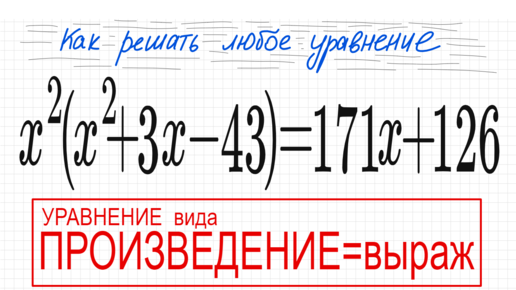 №7 Уравнение со скобками х^2(х^2+3х-43)=171х+126 Уравнение вида Произведение=выр 9кл 10кл 11кл ЕГЭ уравнение 4 степени т Безу