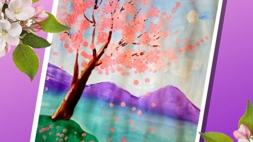 Рисуем цветущую сакуру ватными палочками