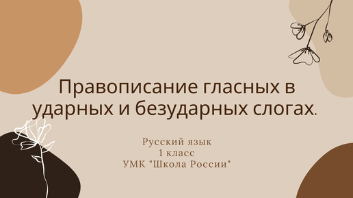 Правописание гласных в ударных и безударных слогах. Урок русского языка в 1 классе.