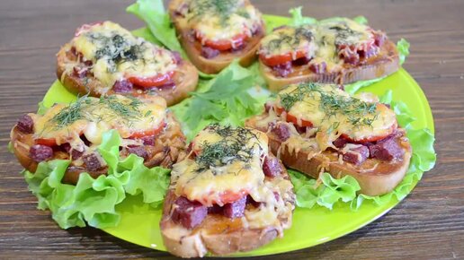 Горячие бутерброды вместо пиццы в духовке.Хрустящая основа с сочной начинкой.