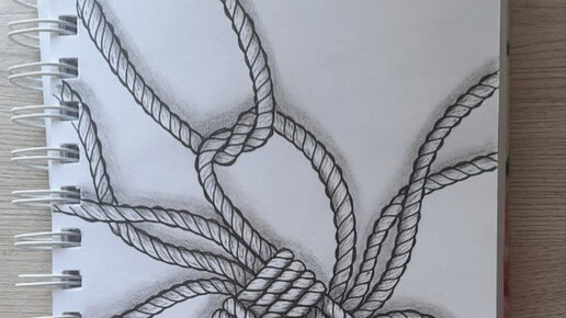 Подробное видео, как нарисовать веревку с узлами и плетениями