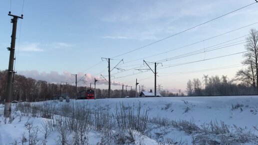 Электропоезд ЭД4М-0439 и электровоз ВЛ11М-395 с грузовым поездом морозным солнечным утром