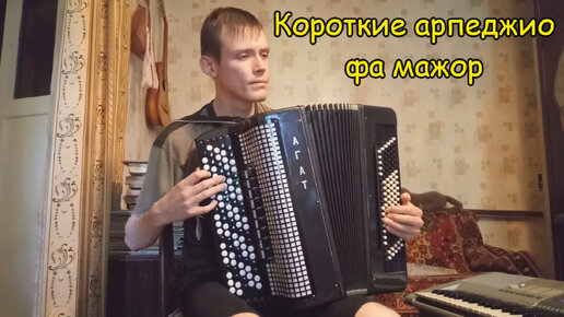 Короткие арпеджио фа-мажор на 2 и на 4 октавы разными штрихами на баяне. Урок №18