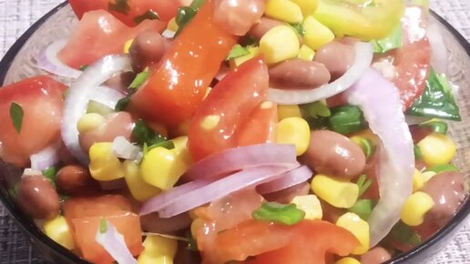 Овощной Салат с консервированной фасолью и кукурузой без майонеза.