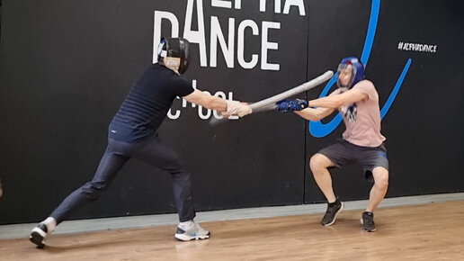 Фехтование катаной. Кендзюцу. Спарринг на длинных мечах в зале на тренировке Katana Club